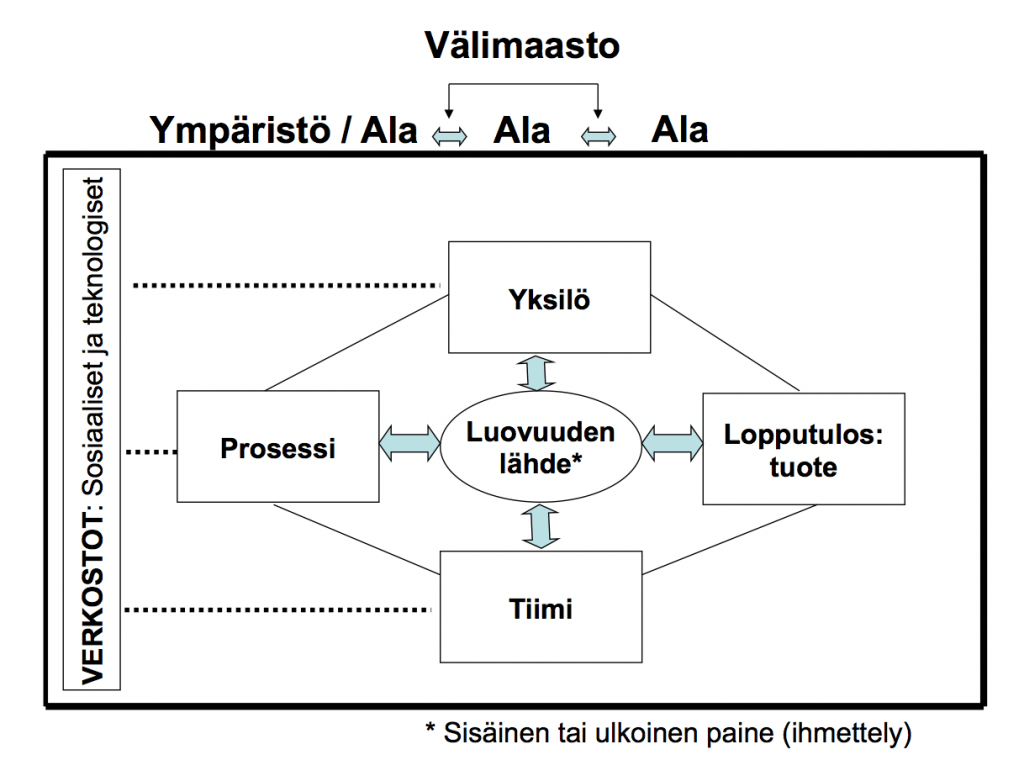 Kuvio. Luovuuden kokonaisvaltainen systeemimalli.